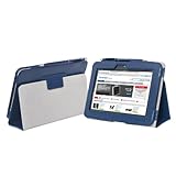 TeckNet 7" Amazon Kinde Fire HD Étui en cuir avec support Amazon pour Kindle Fire HD, Support et le sort de veille + Film de protection écran + 2-in-1 Stylo/écran tactile stylo à encre gel - Dark Blue
