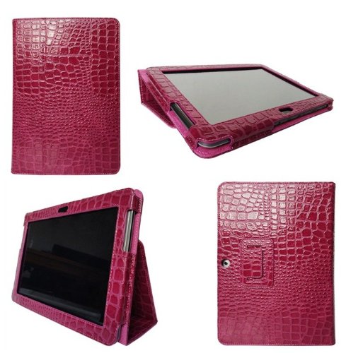 Housse/etui + support en couleur Fushia, en en simili cuir effet crocodile pour Samsung galaxy tab2 10,1" P5100/P5110 .