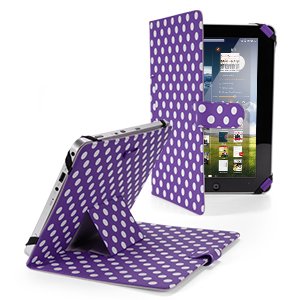 Housse universel etui couleur violet polka dot blanc simi cuir support pour tablette PC 10" 10.1" 10.2" style traditionnel ex. Android Tablet PC Tab Epad Apad, MID pad, SuperPad, Samsung Galaxy Tab 10.1 P7500 P7510, Tab 2 10.1" P5100 P5110, Galaxy Note 10.1 N8000, 10" Blackberry player book, 10" E reader book, Acer ICONIA A500 A501, Motorola XOOM MZ601 10" Advent Vega, etc