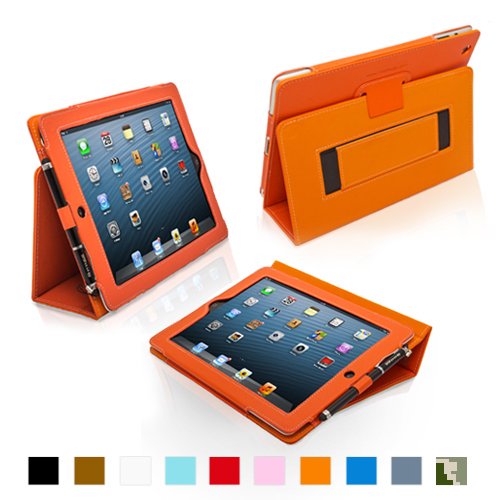 Snugg - Étui en cuir orange pour iPad 3 et iPad 4 servant de housse support, avec sangle élastique et intérieur en nubuck de première qualité - Fait automatiquement passer en mode veille et sortir du mode veille votre iPad 3 ou 4. Design de qualité supérieure comme le suggère GQ Magazine