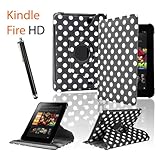 eLifeStore Coque / étui / housse / couverture / protection en cuir à pois luxe pour Kindle Fire ® HD 7 " - Rotation de 360 ??degrés avec fonction veille automatique + : Protection d'écran + stylet tactile (pour Kindle Fire HD SEULEMENT) (Noire, noir, blanc, blanche)