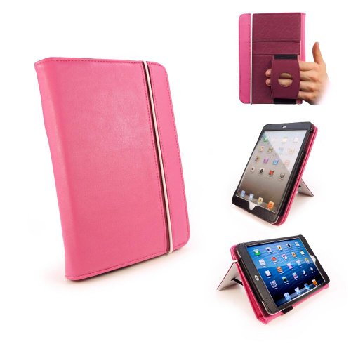 Tuff-Luv Embrace Plus: Etui en cuir avec support (Sleep Book) pour Apple iPad Mini - RoseComme dans la conception originale, vous trouverez une bande encastrée qui vous permet de continuer la lecture à l'aide d'une seule main, tout le temps garder les contrôles parfaitement à portée. Contrairement aux autres étuis, qui vous obligent à étendre votre main sur le dos de l’étui, l'étui Tuff-Luv Embrace soutient une position de lecture d'une seule main, avec un accès aux contrôles de votre iPad mini. Notre étui en simili cuir de haute qualité style-livre comprend d’un harnais de sécurité afin d'assurer votre nouveau iPad mini ne bouge pas de l’étui. Vous pouvez avoir la tranquillité d'esprit de savoir que votre eReader est en sureté, tout en ayant temps avoir un accès complet à toutes les commandes et les fonctions dont vous avez besoin d’utiliser. Vous pourriez utiliser votre Ereader tout en dégustant votre café et de ne pas avoir posé votre appareil. Le hand-band est parfaitement aligné pour que vous ayez accès aux contrôles de votre appareil, tout en restant dans une position confortable. Simple et robuste, pour se protéger contre toutes les bosses et se gratta que le monde a à offrir. A l'intérieur, nous avons inclus une doublure en microfibres pour donner à votre iPad mini le petit plus.
