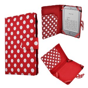 HOUSSE etui cuir polka dot rouge blanc pour amazon KINDLE 4 et kobo touch 6" lecteur ereader