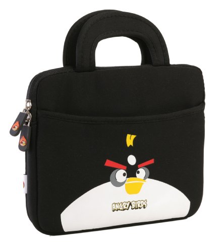 Sacoche noire avec poignées pour Apple iPad / tablette 10 pouces, au thème Angry Birds, (néoprène, imperméable, double fermeture éclair YKK, poche extérieure, doublure intérieure peluche douce)