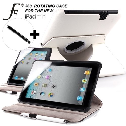 ForeFront Cases® - Étui en cuir synthétique avec support pour iPad mini Apple - fermeture magnétique avec mise en veille automatique - stylet inclus - Blanc Cet étui pivotant en cuir synthétique pour iPad mini d'Apple s'adapte parfaitement à la forme de votre tablette. Il sert non seulement de protection, mais également de support. Rotatif, il vous permet d'écrire, lire ou regarder des vidéos en toute liberté et à 360 degrés ! L'étui est équipé d'une fonction de mise en veille automatique par fermeture magnétique. Support rotatif à 360 degrés Son design rotatif unique vous permet de poser l'iPad dans la position souhaitée et de garder les mains libres pour écrire, lire, envoyer des messages ou regarder des vidéos en mode paysage ou portrait. Fabriqué à la main, cet étui a été conçu à partir des meilleurs matériaux. À l'image de tous les produits Forefront Cases®, il se distingue par sa qualité et l'attention toute particulière portée aux détails. Son design sans couture apparente lui donne un aspect raffiné, tendance et résistant. Forme ajustée pour une protection complète Cet étui haut de gamme garantit à votre iPad mini une protection sans égal au quotidien.