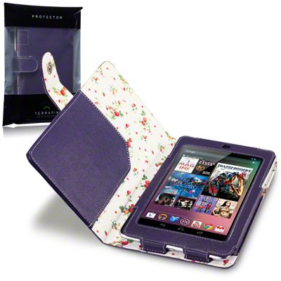 Etui / Housse "Terrapin" Folio Style en Cuir pour Google Nexus 7 - Violet (Fleur à l'intérieur)