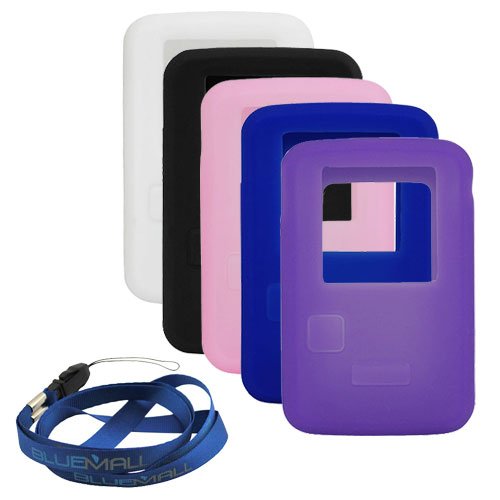 GTMax 5 caoutchouc silicone souple Housse Etui - (Rose + noir + bleu foncé + blanc + violet) + lanière dragonne pour Sandisk Sansa Clip 4 Go Zip 8 Go Lecteur MP3 (2011 modèle)