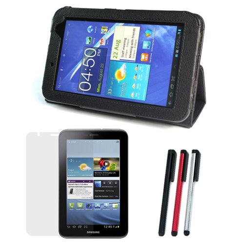 Evecase Noir housse étui en cuir avec support Pour Samsung Galaxy Tab 2 7.0 P3113 P3100 Android Tablette PC + claires protection d'écran du film Garde + 3 Stylets Great Deals, Shop Online, Read