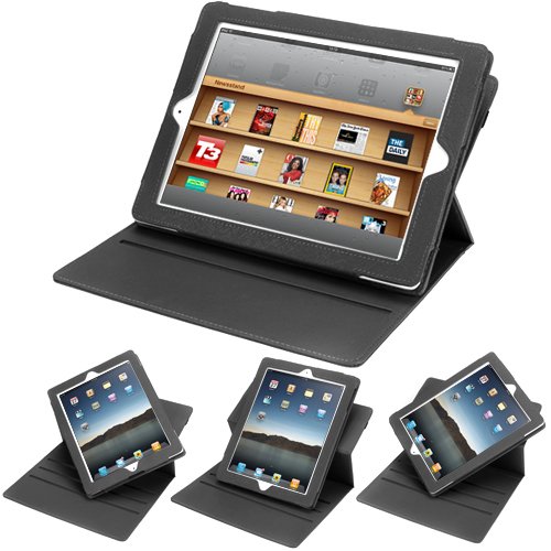 Evecase Rotation de 360 degrés housse étui en cuir avec support - Noir pour Apple iPad 2 / The New iPad 3 tablette n'est pas inclus. Compatible avec Apple iPad 2 / The New iPad 3 Tablette