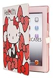 Étui folio en simili cuir pour Apple iPad 2 / nouvel iPad 3, au thème Hello Kitty avec rubans rouges (fermeture magnétique, réveil/sommeil automatique, support bureau & appui-tête)