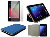 NAVITECH - Housse à rabat en cuir bleu, étui rigide smart, avec stand , fonction réveil/sommeil et Protection d'écran anti-réverbérations pour le Google Nexus 7 Android 4.1 Jellybean Tablette par Asus