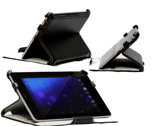 NAVITECH - Housse à rabat en cuir bycast noir avec stand à angles multiples, fonction réveil/sommeil automatique, espace pour le stylet & Protection d'écran anti-réverbérations pour le Google Nexus 7 Android Tablette par Asus